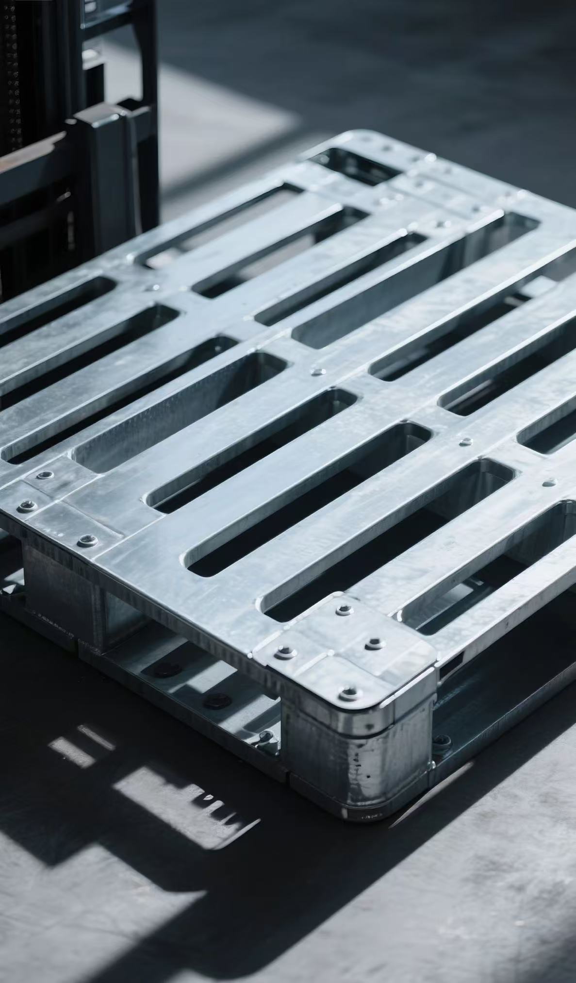 注?:雙層鐵托盤可進(jìn)一步優(yōu)化垂直空間利用率,適用于車間周轉(zhuǎn)或港口密集存儲(chǔ)。